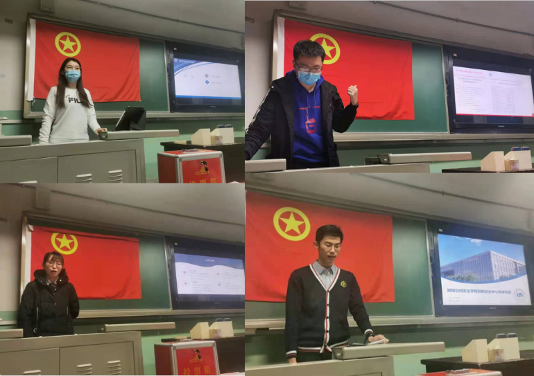 之后,分团委干事们根据部门及个人总结,采用无记名投票的形式,票选出了两个优秀组织和七位优秀学生干部。获得网络空间安全学院分团委优秀组织奖的部门有:创新创业中心和学生会。获得网络空间安全学院分团委优秀学生干部的同学有:赵博宇、马超平、傅云濠、邢馨心、王璐茜、马文、熊思宇。他们的努力与优秀得到了大家的认可,也希望他们可以继续为学院发光发热,起到表率作用,贡献自己的力量。