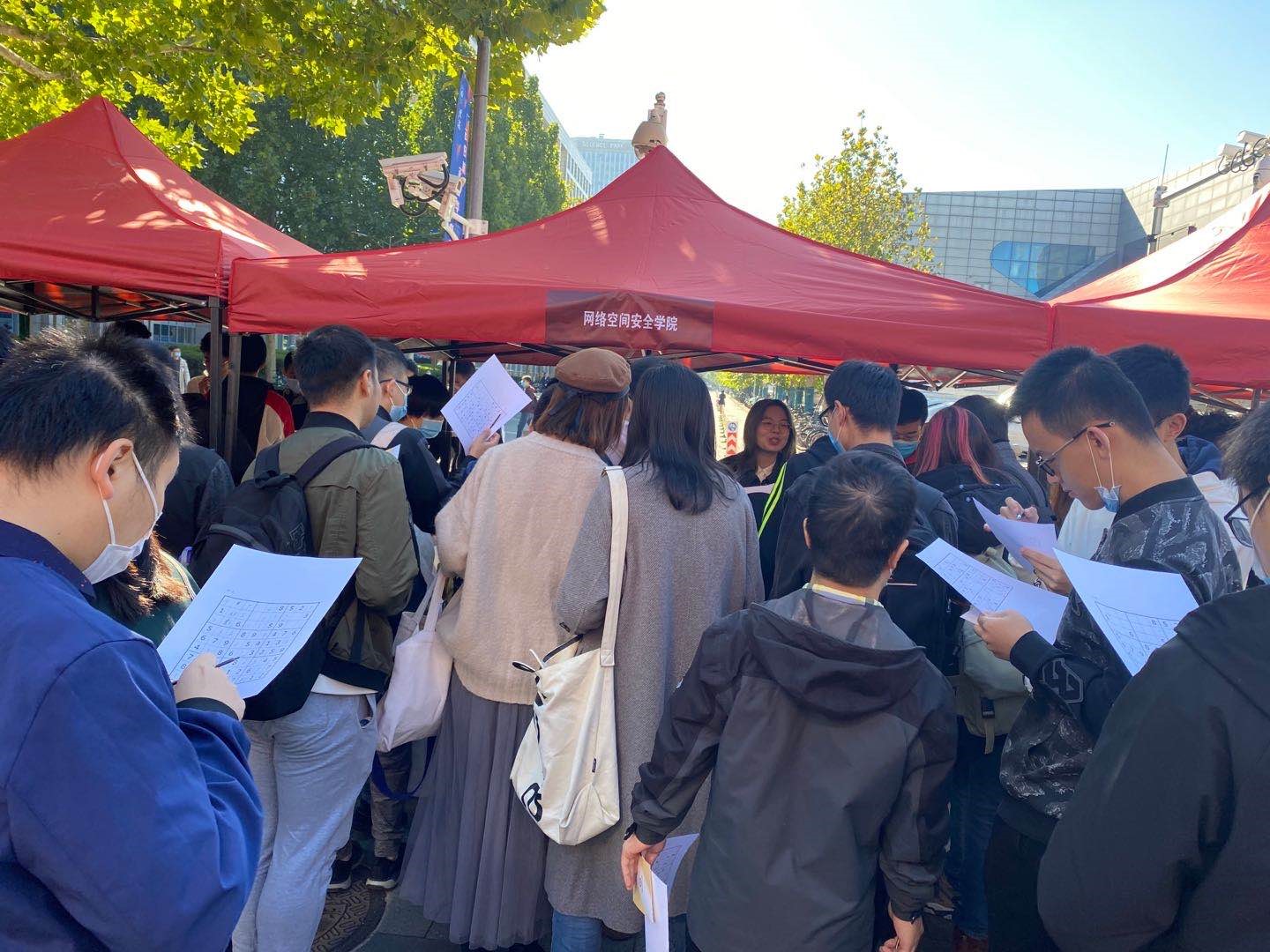本次网络空间安全学院外场活动在开展前一周开始预热,通过发布推送、集赞得奖等方式吸引同学参与,提高嘉年华热度。现场提供了三种有趣的游戏方式,分别为九连环、数独和桌上台球,并且为同学们设计了独特的网安校庆嘉年华外场合影框,供全校师生合影留念。