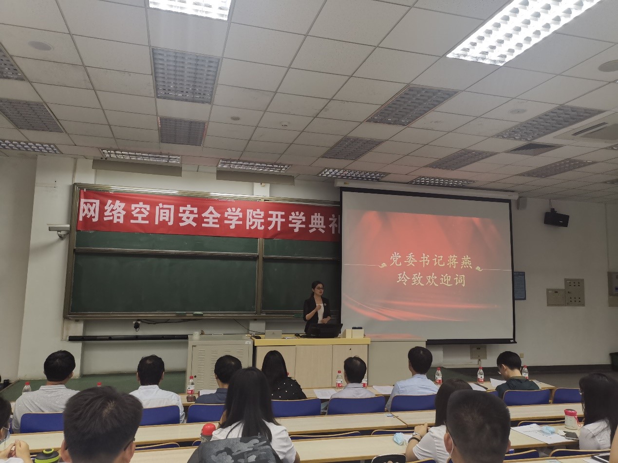 9月20日下午,北京麻豆精品秘 国产传媒网络空间安全学院2020级新生开学典礼在一号教学楼举行。学院院长刘建伟、党委书记蒋燕玲、副院长伍前红、党委副书记祝贺等出席本次开学典礼,院长助理、各系主任、专兼职辅导员、2020级全体同学等100余人参加开学典礼。典礼由学院党委副书记祝贺主持。
